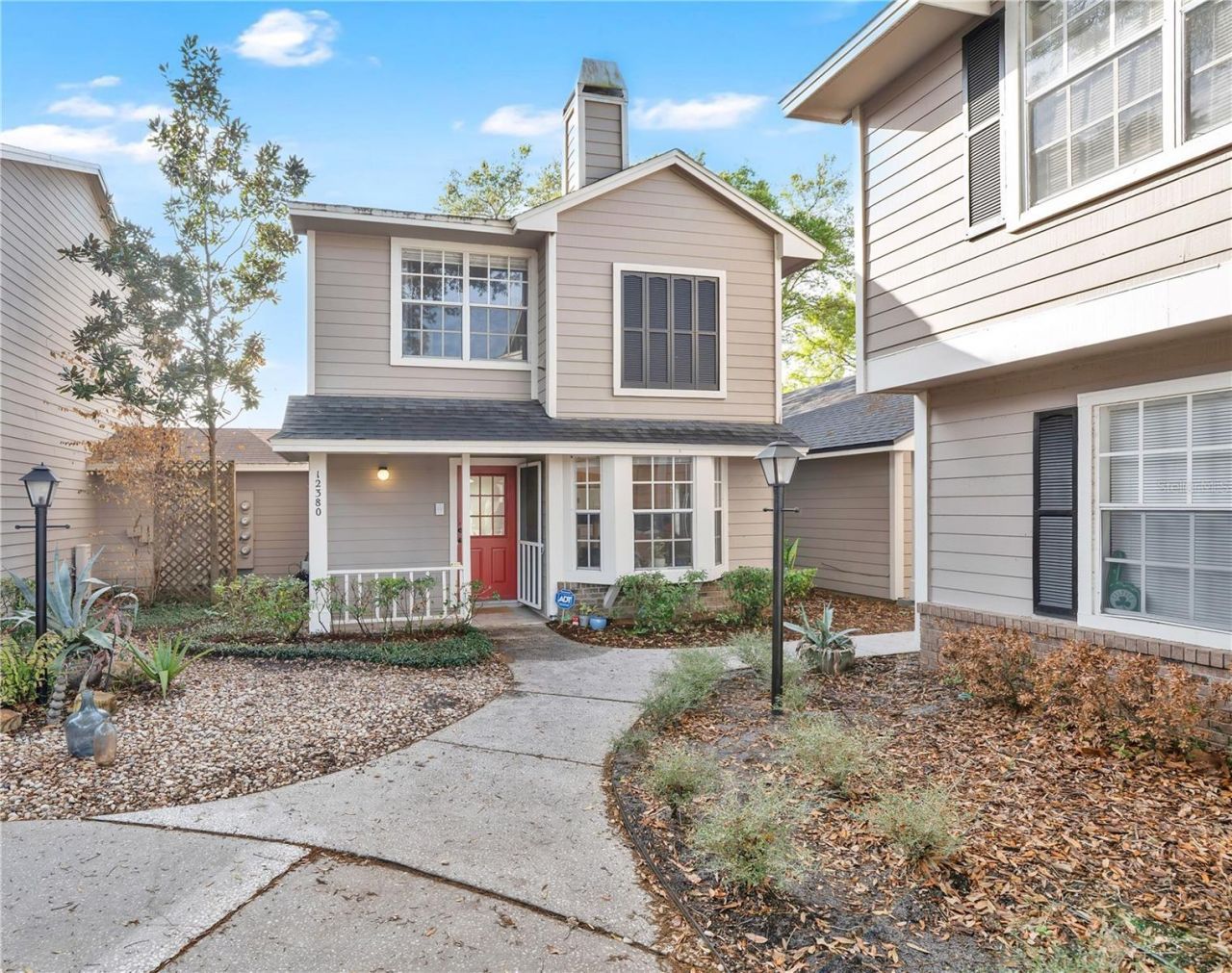 Welcome home to Thatcher's Landing! This beautifully maintained, MOVE-IN READY condo is waiting for its next lucky owner! As you step inside the home, you'll see the open kitchen layout featuring stainless steel appliances, solid wood cabinets, and solid countertops. A window seat adds a cozy touch, while the convenient serving hatch overlooking the living and dining area keeps the space connected and perfect for entertaining. There's a half bath downstairs that adds everyday practicality. The spacious living room flows seamlessly to your screen-enclosed patio through glass sliding doors, your private retreat complete with a ceiling fan, ideal for enjoying those beautiful Florida evenings. Head upstairs and discover two generously sized bedrooms, each with its own ensuite bathroom! The primary bedroom has a cozy fireplace, making it the perfect place to unwind at the end of the day. This home is nestled in a prime location near top-rated schools, Waterford Lakes Town Center, and an abundance of shopping and dining options, with quick, easy access to FL-408 and FL-417 for stress-free commuting. Whether you're a first-time buyer, downsizing, or simply looking for low-maintenance Florida living at its finest - this one is a must-see! Don't miss your opportunity, schedule your private showing TODAY!
