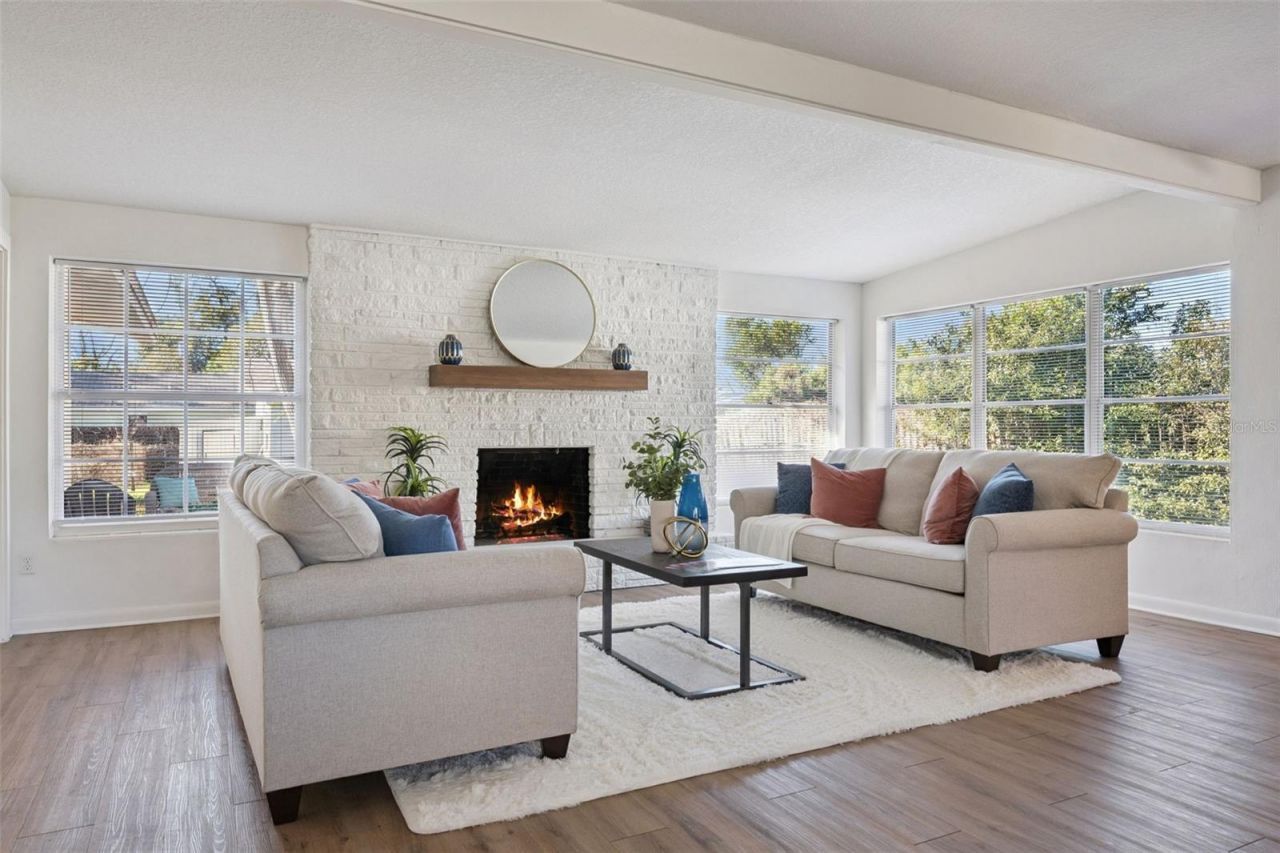 One or more photo(s) has been virtually staged. NEW ROOF 2022 - NEW AC 2022 - NEW ELECTRICAL PANELS 2022 - REPLUMB 2022 - NEW SEPTIC 2025 - Seperate detached GUEST HOUSE offering built-in monthly income potential. Previously rented under market value at $900/month, the guesthouse is currently vacant and ready for a new tenant, a private space for adult children, or a comfortable in-law suite. Endless possibilities to maximize value and flexibility! The spacious single-level layout features 3 bedrooms, 2 bathrooms in the main house, plus an updated guest suite. Enjoy an open living and dining area with a stone fireplace, designer lighting, and luxury vinyl plank flooring. The upgraded kitchen includes wood cabinets, granite countertops, penny tile backsplash, and new stainless appliances. A bright family room leads to two outdoor seating areas, including a brick courtyard with a second fireplace. The oversized primary suite and additional bedrooms feature new plush carpet, while the bathrooms have been fully updated. The detached guest suite offers 1 bedroom, 1 bath, a sitting area, and a wet bar. Additional features include a washer and dryer, security cameras, and a Google/Nest doorbell, all conveying with the home. Double carport, oversized driveway, and a private lot on a quiet street. Conveniently located near downtown Maitland with easy access to I-4.