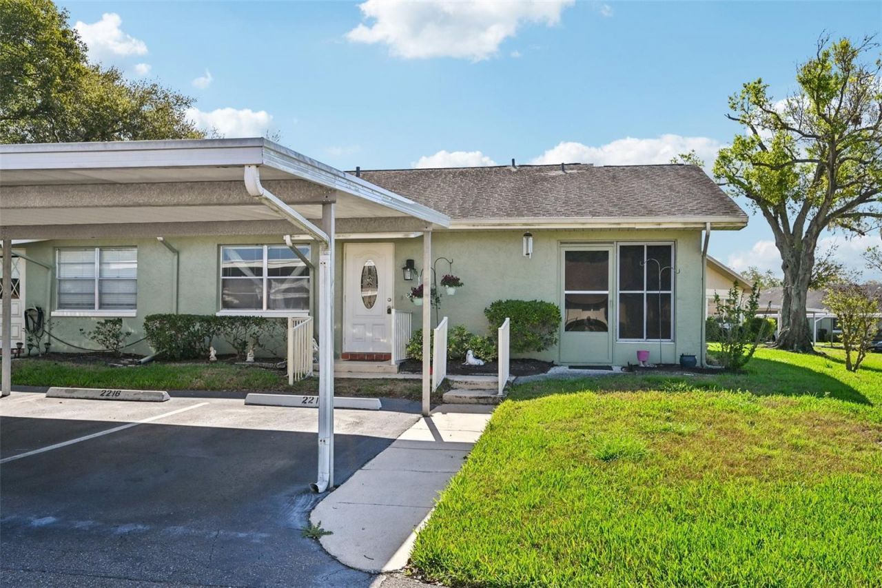 One or more photo(s) has been virtually staged. Enjoy maintenance-free living in this 2/2 condo, featuring the ultimate convenience of two covered parking spots right outside your front door. The open-concept living and dining area flows into a kitchen with views of the side patio, accessible via sliding glass doors. A unique enclosed side porch offers direct access to the indoor utility room, while plush carpet runs throughout the home.The spacious primary suite is a true retreat with a large walk-in closet and en suite bathroom featuring a walk-in shower. The second bedroom is equally comfortable, offering a large closet and easy access to the second full bathroom with a tub. Perfectly designed for comfort and ease, this move-in-ready home is all about low-maintenance lifestyle.You'll love the gated community of Kings Point, which has amazing facilities, pools, clubs and events just waiting for you to enjoy. Located between Sarasota and Tampa, this home is perfectly positioned for a convenient ride to airports, great shopping, dining, and professional entertainment. With easy access to award-winning, sandy beaches, you'll experience the best of all worlds-without the stress of big city life. Leave the hustle behind and embrace a new chapter in Sun City Center, Florida, the state's top-ranked and most affordable 55+ retirement community.