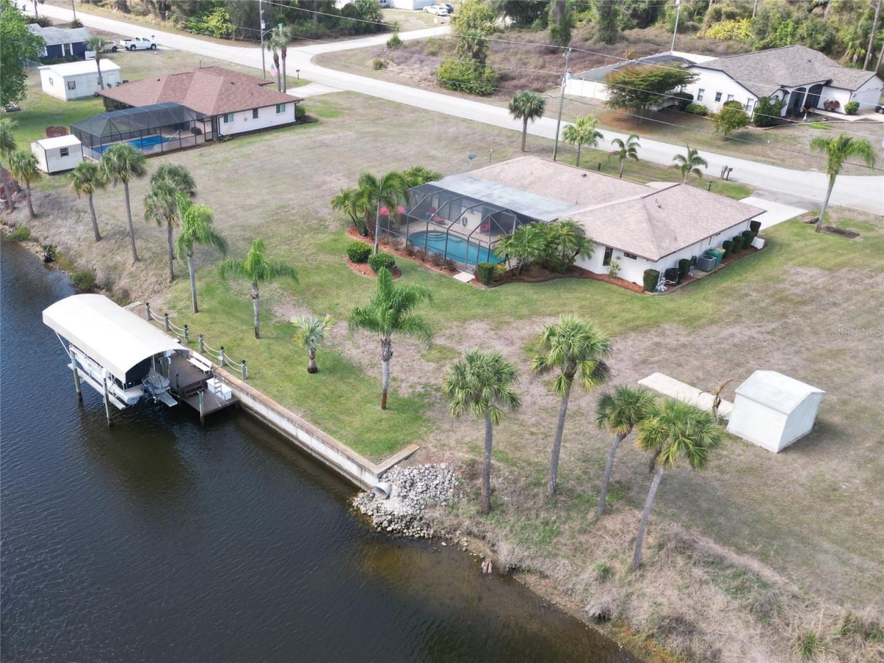Florida Living At Its Best. This home has it all and the photos say more than anything written here. This 3-bed/2-bath is on a boating canal which leads out to the Charlotte Harbor and Gulf of America. The property features a very nicely manicured yard with lots of Palm trees and tropical landscaping, an 80' concrete seawall with a new dock and a 5-ton boat lift. The neighborhood is on municipal water but the yard has its own irrigation well to keep the water bills down. You won't be spending much time indoors...the covered/screened lanai and pool (heated) get morning sun and afternoon shade creating a wonderful outdoor living space. The home is 'move-in condition with many upgrades and has been meticulous cared for inside & out; it has never been rented by the current owners of 16 years. The Master Suite features a walk-in closet and its own entrance out to the lanai/pool. Como St is not a 'thru-street; the neighborhood is super quiet and there is minimal traffic. The adjacent lots on each side of the home are also available to purchase for someone who wanted to create a tropical 'buffer zone or family compound. The shed on the vacant lot to the left will be relocated to the back yard of this property if the new owner wishes. One of the Sellers is a licensed Real Estate Sales Person in Michigan and Florida.