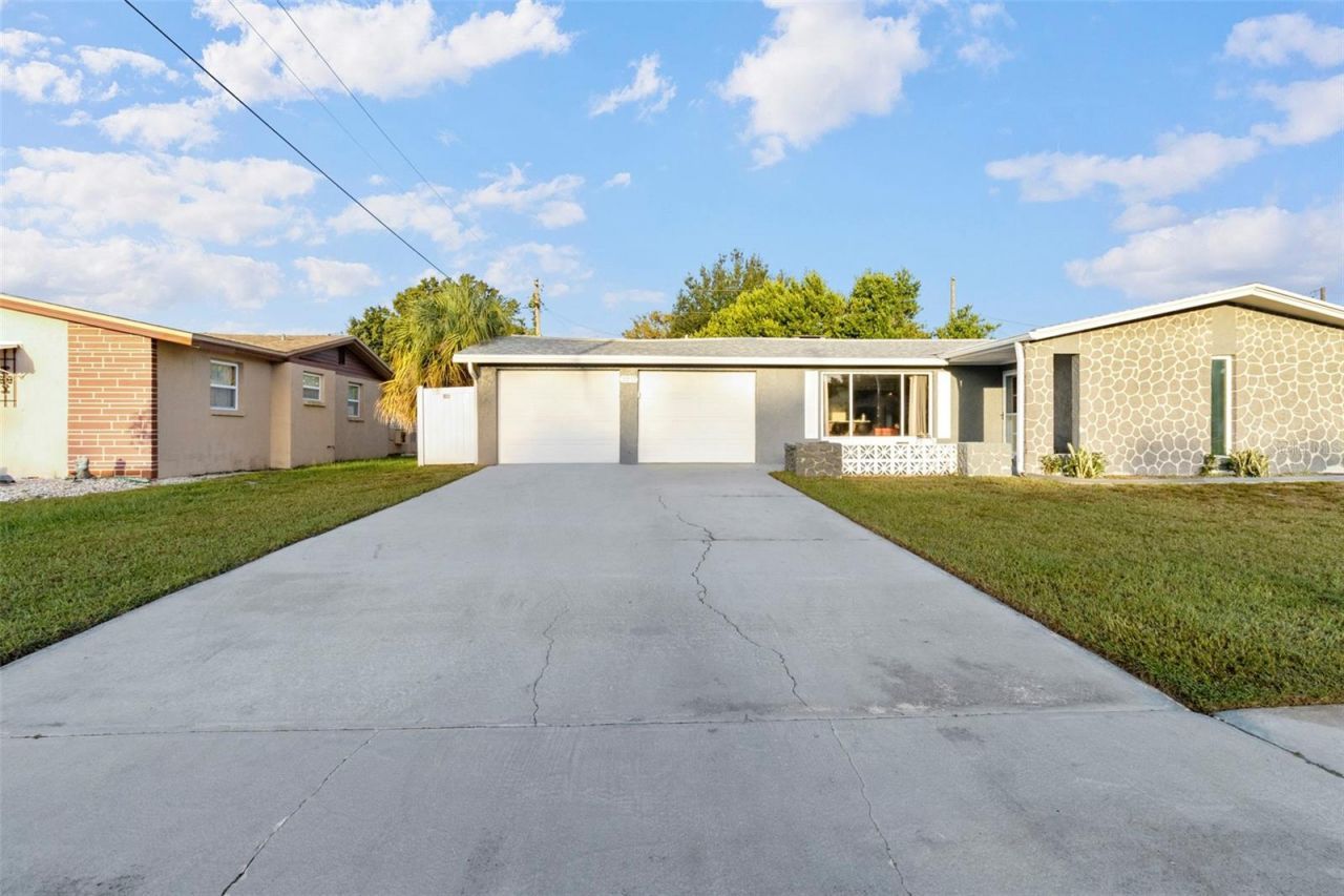 Welome to 3237 Sanford Drive in Holiday, Florida - a completely updated 2-bedroom, 2-bathroom home with a versatile bonus room and all the modern touches you've been searching for. Step inside to find a bright, open layout and a spacious kitchen that truly steals the show. With plenty of countertop space, abundant cabinetry, and room to move, this kitchen is designed for those who love to cook and entertain. The home features a large screened-in back porch overlooking the fully fenced yard, perfect for relaxing or hosting gatherings. A two-car garage with a new garage door motor and an extended driveway provides ample parking and storage space. Major updates include a brand-new roof with a transferable 1-year warranty (transferable once) and a newer AC unit installed in November 2017 for added peace of mind. Located in Flood Zone X (500), this home does require flood insurance, but the seller is providing valuable savings by including a recent survey, elevation certificate, and wind mitigation report for the new roof - helping streamline insurance quotes and closing costs. With no HOA, you'll enjoy both freedom and flexibility to truly make this home your own. Completely updated, move-in ready, and full of features that make