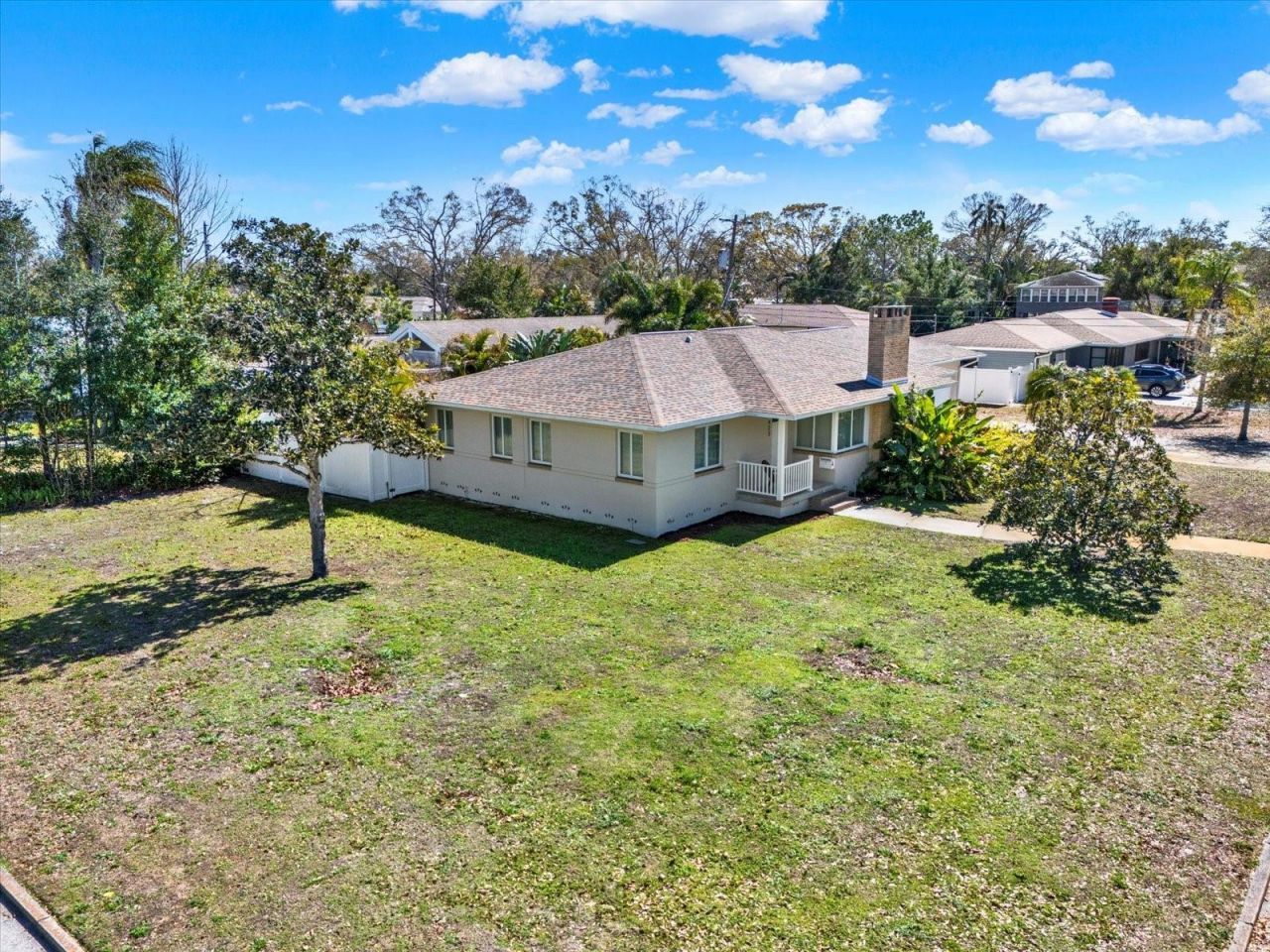 Welcome to this charming ranch home on a rare corner lot in Central Oak Park, offering over 2,000 square feet of character and space just minutes from downtown St. Petersburg. Beautifully restored original hardwood floors run throughout much of the home. The great room offers an open, airy feel with abundant natural light and a wide field of view from wrap-around corner windows, while rounded wall details and built-in shelving highlight the timeless craftsmanship that gives this home its distinctive Old Florida charm.The home features a spacious dining room along with a versatile flex space perfect for a home office, breakfast nook, or creative studio. Plantation shutters throughout create a warm and versatile atmosphere that blends classic character with everyday functionality.Enjoy the comfort of large bedrooms and generous closet space in both the primary and guest suites. The primary bedroom features an ensuite bath, and both bathrooms retain the original timeline and character of the home, with laundry facilities conveniently located adjacent to the bedrooms.Situated on over a quarter-acre, the outdoor space feels like your own private retreat. The lush, jungle-like backyard offers exceptional privacy and features Trex decking and a relaxing hot tub, making it an ideal setting for entertaining or unwinding under the Florida sky.One of the standout features is the oversized two car garage, perfect for a workshop, hobby space, additional storage- complete with loft-style rafter storage above!Major systems have already been addressed, offering buyers peace of mind while preserving the home's charm.Located just a short drive to downtown St. Petersburg, you'll enjoy easy access to dining, shopping, and everything the city has to offer while living in one of St. Pete's most character-filled neighborhoods with oak-lined and brick paved streets!
